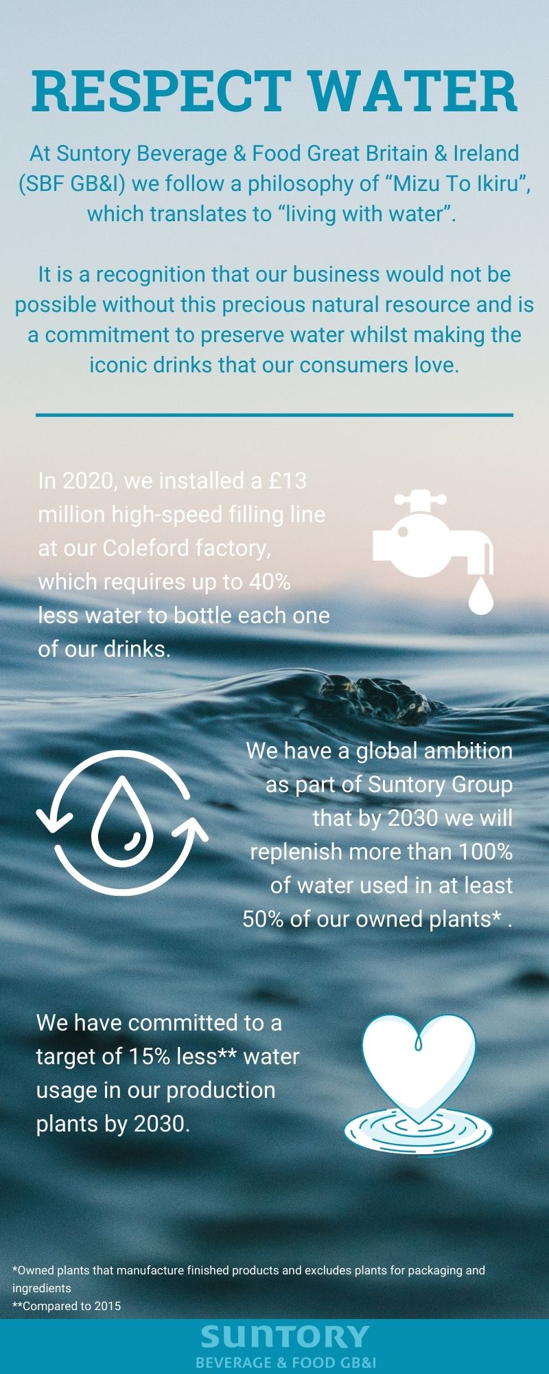 SBF GB&I is proud to deliver Suntory's official Mizuiku programme in the UK in partnership with Severn Rivers Trust. The programme aims to teach families the importance of water as a precious resource and is part of our broader commitment to manage our natural resources sustainably, including the conservation, restoration and reduction of water.