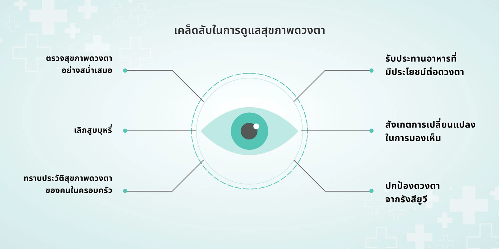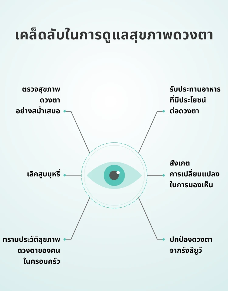 ดวงตาของคุณเปรียบเสมือนหน้าต่างสู่โลกกว้าง ให้คุณได้สัมผัสประสบการณ์ในทุกช่วงเวลาชีวิต การมีสุขภาพตาที่ดีจะช่วยให้การมองเห็นชัดเจน และยังสามารถตรวจพบสัญญาณเริ่มต้นของโรค ต่าง ๆ ได้ ช่วยรักษาสุขภาพโดยรวม ให้คุณมีความคล่องตัว และใช้ชีวิตแต่ละวันอย่างเต็มที่