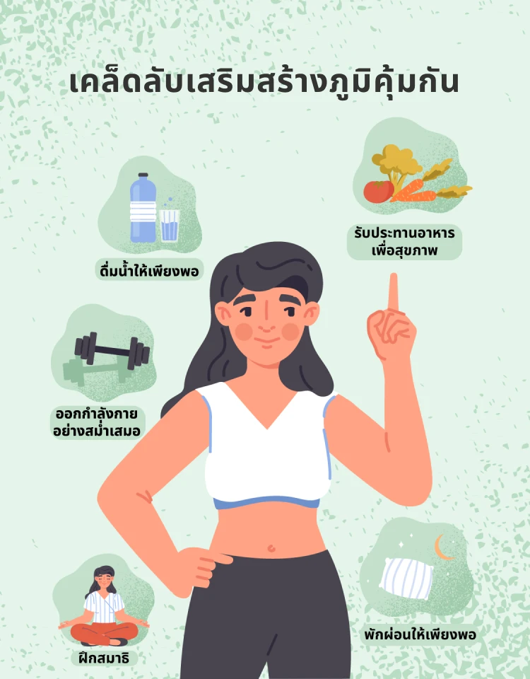 ระบบภูมิคุ้มกันเป็นแนวป้องกันแรกของร่างกายต่อเชื้อโรคต่างๆ รวมถึงเชื้อแบคทีเรีย ไวรัส และสิ่งแปลกปลอมที่เป็นอันตราย เมื่อร่างกายได้รับสารอาหารที่เหมาะสม จะช่วยเสริมสร้างระบบภูมิคุ้มกัน ลดความเสี่ยงในการเจ็บป่วย ร่างกายสามารถฟื้นตัวได้รวดเร็ว ทั้งยังเสริมระบบการทำงานของร่างกาย เพื่อให้คุณสามารถเผชิญกับความท้าทายในแต่ละวันได้อย่างมั่นใจ