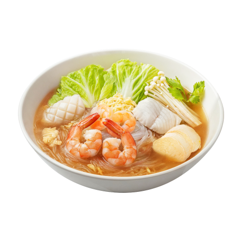 - เติมวุ้นเส้นและผัก /เห็ด ตามชอบลงในน้ำซุป ตามด้วยไข่ไก่ ต้มให้สุก